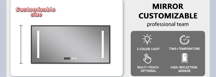 Поддържа персонализирани размери, мулти-тъч управление, огледала с високо качество от сребристо стъкло, регулируемо осветление и интелигентни функции за създаване на модерно и персонализирано изживяване.