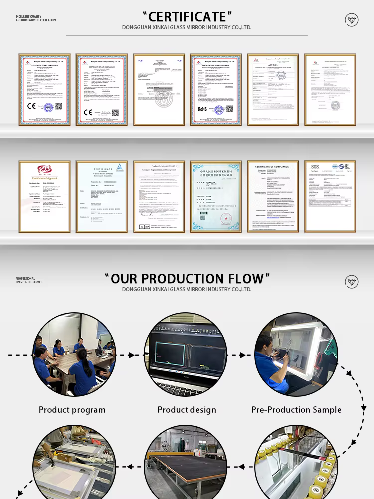 2️⃣ ແວ່ນເງົາຄຸນນະພາບສູງຂອງພວກເຮົາມີຄຸນລັກສະນະການສຳຜັດຫຼາຍຈຸດ, ແສດງເວລາ ແລະ ອຸນຫະພູມ, ແລະ ເຕັກໂນໂລຊີ LED ທີ່ປະຢັດພະລັງງານ, ໄດ້ຮັບການຢັ້ງຢືນຕາມມາດຕະຖານ CE, RoHS, UL ແລະ ISO ເພື່ອຄວາມໜ້າເຊື່ອຖືໃນລະດັບໂລກ.