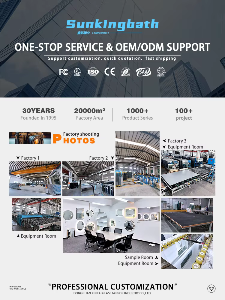 1️⃣ ດ້ວຍປະສົບການໂຮງງານ 30 ປີຂຶ້ນໄປ, Sunkingbath ສົ່ງເສີມໃນການຜະລິດແວ່ນ LED OEM/ODM ທີ່ມີຂະໜາດແບບກຳຫນົດເອງ, ການຄວບຄຸມດ້ວຍການສຳຜັດອັດສະລິຍະ, ຕ້ານການເກີດໃຝ່, ແລະ ແສງສະຫວ່າງທີ່ປັບສີໄດ້ ສຳລັບໂຄງການຫ້ອງນ້ຳ, ຮ້ານເສັ້ນຜົມ ແລະ ໂຮງແຮມ.