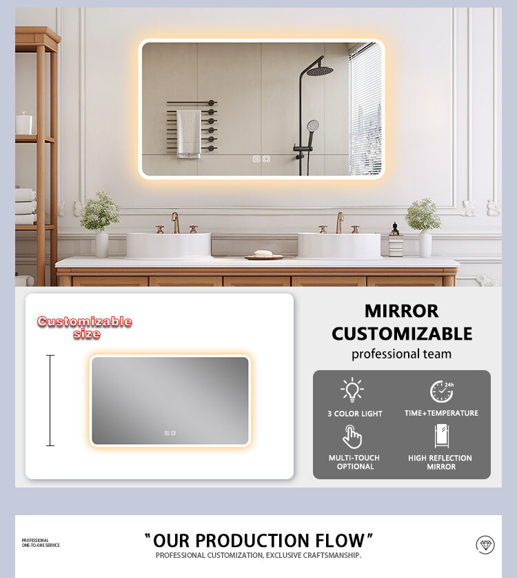 Ramme-fri firkantet LED-speil | badkamer LED-speil |
